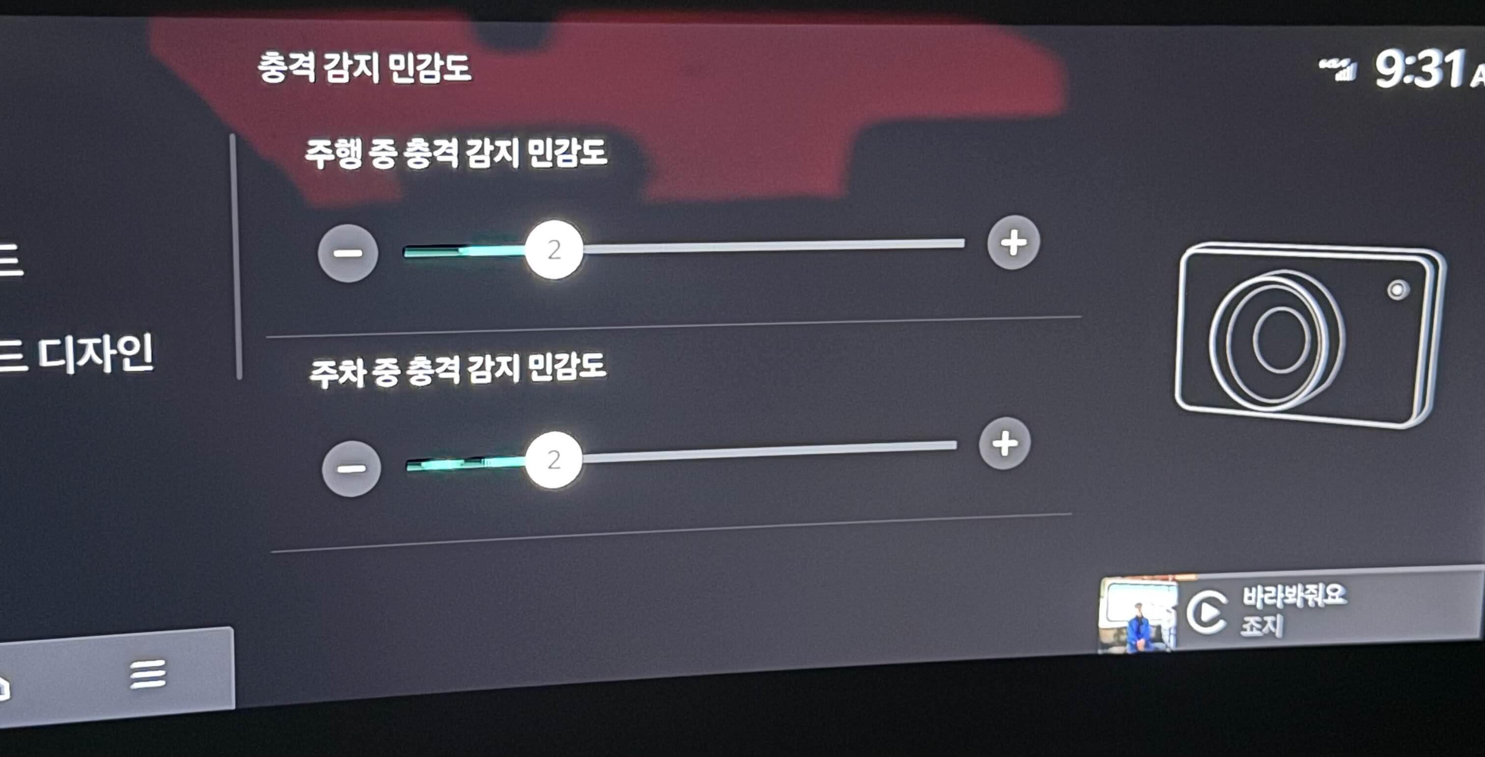 저는 주행 중 충격 감지도 함께 2단계로 조정했습니다.
